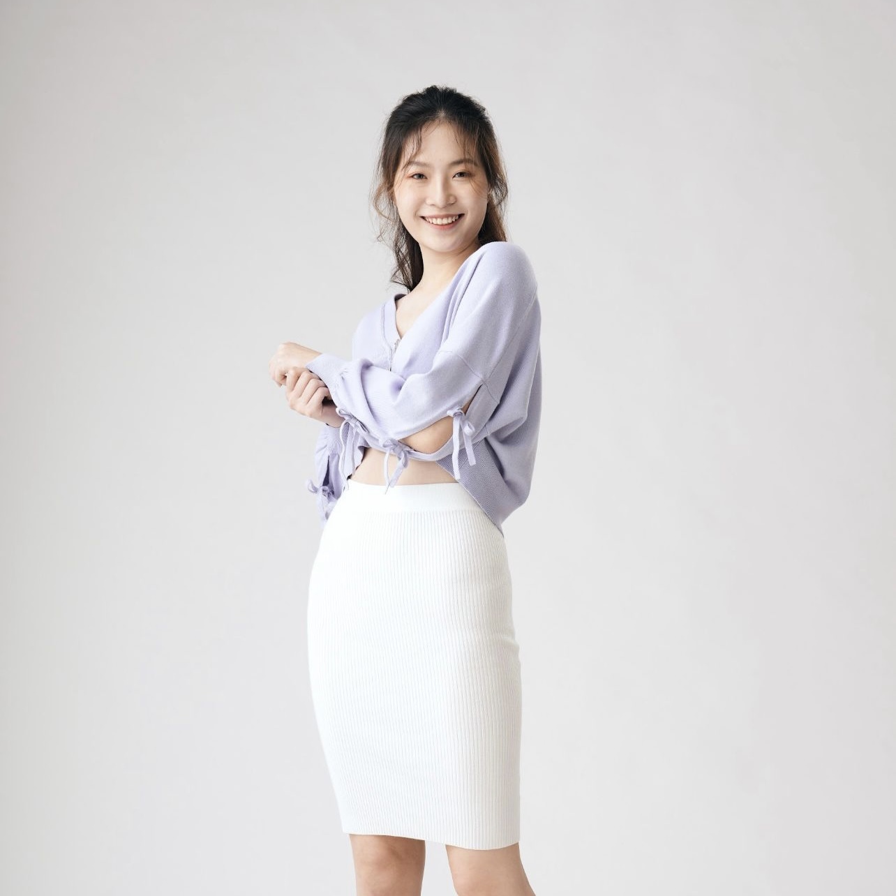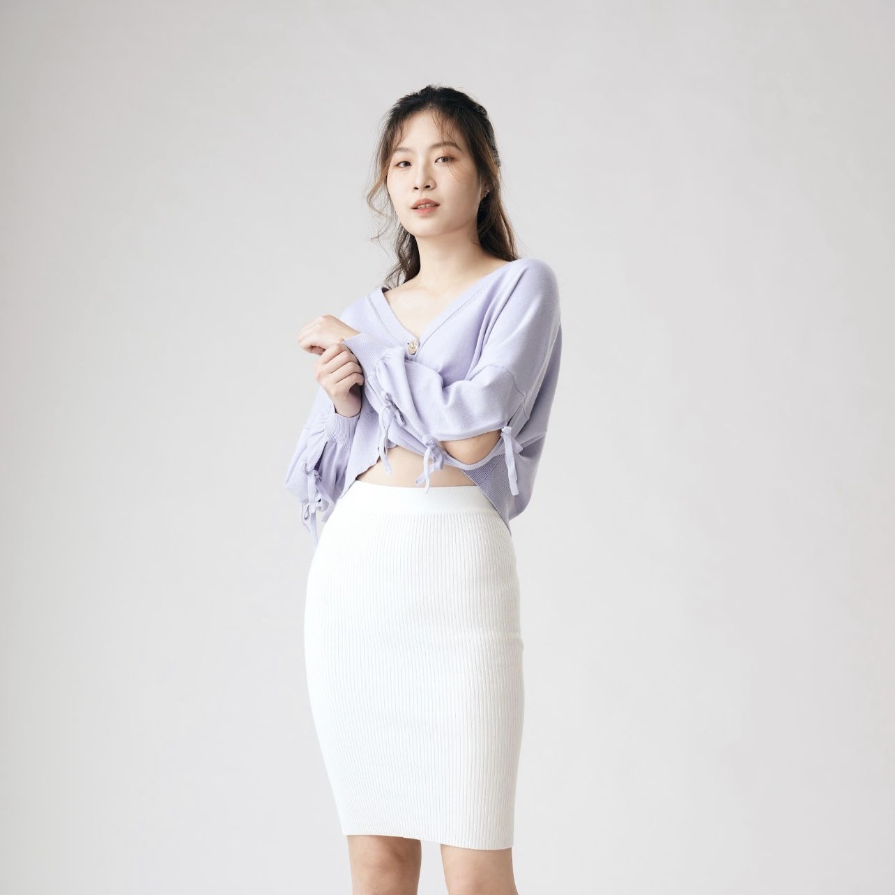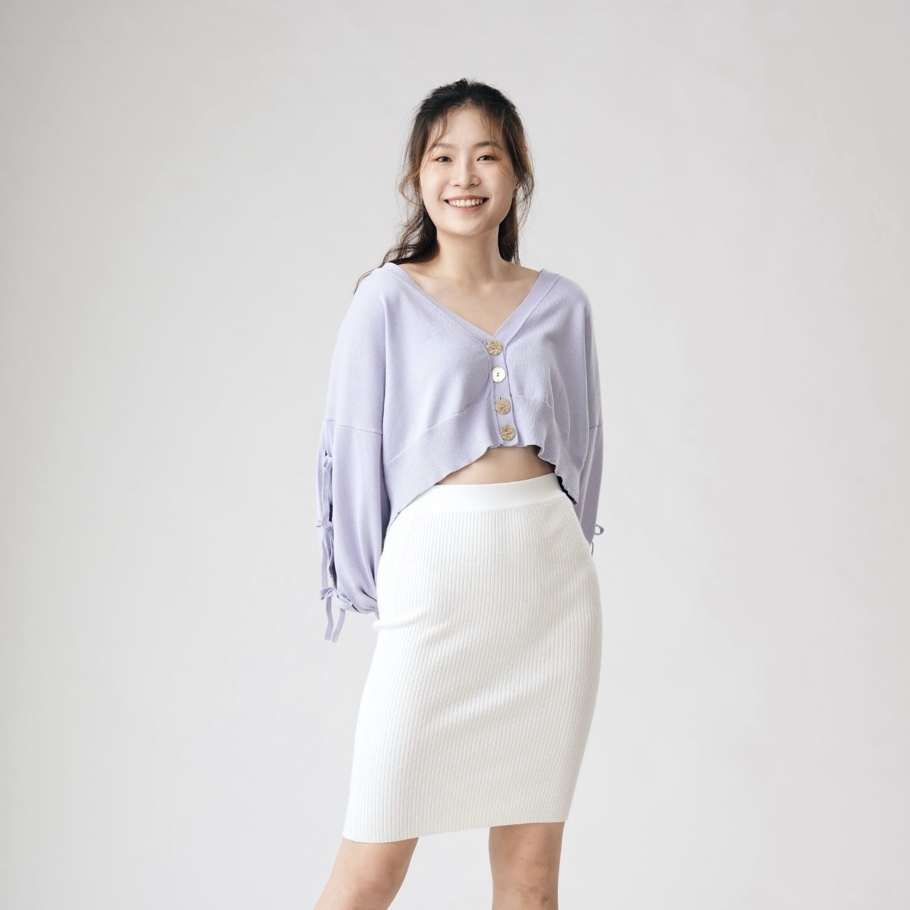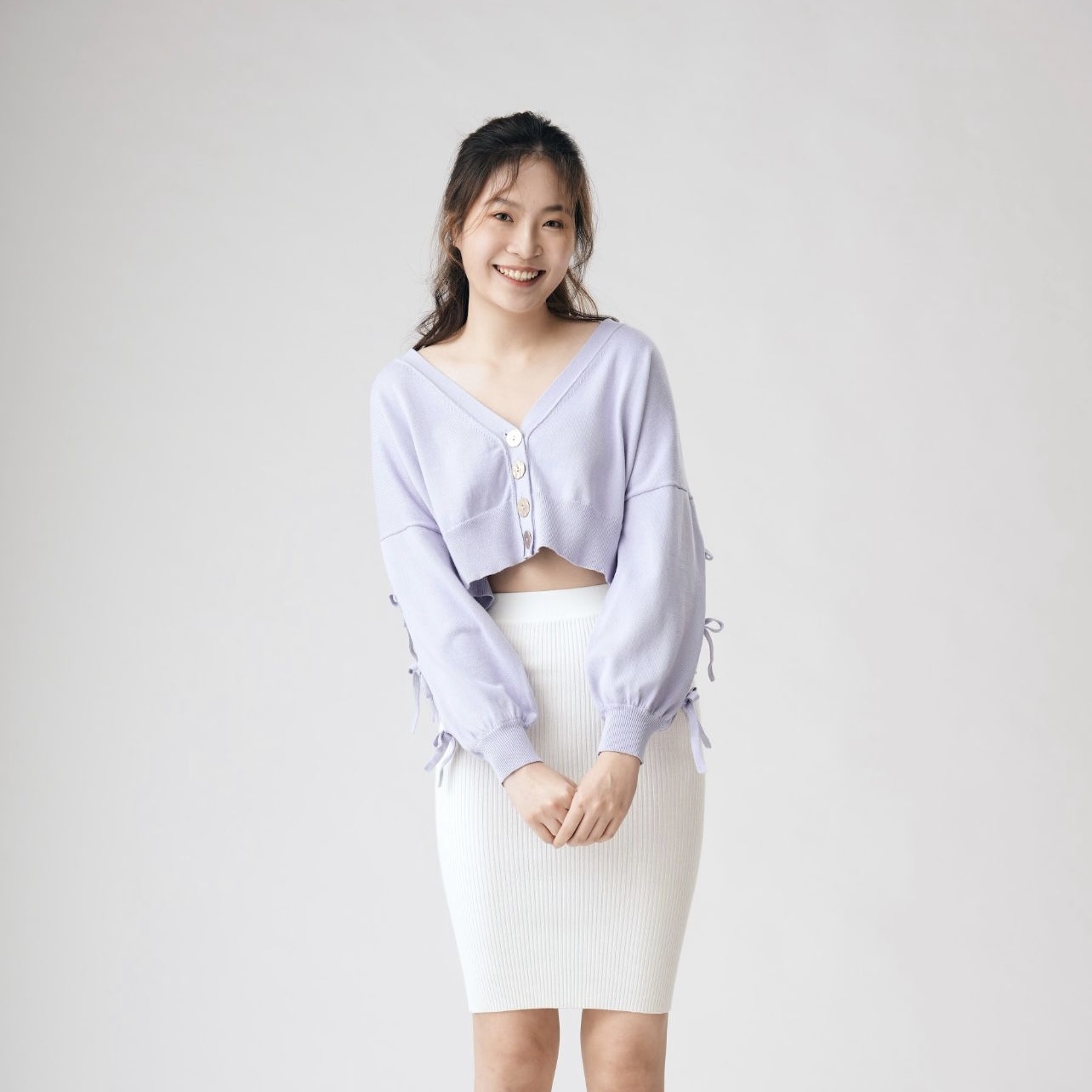Bonnie的大V領和落肩蓬䄂版型不但能有效修飾肩頸線條,更可以模糊手臂線條,巧妙地遮住贅肉👍🏻短版設計配搭高腰的下身單品,一秒拉長比例,穿出高挑視覺😜手䄂的蝴蝶結為整體穿搭注入少女感,同時卻不失優雅穩重✨在換季期間、忽冷忽熱的天氣下,絕對是實穿且百搭的單品!🌸🥰Colour:Lavender Size:SComposition:100% BCI cotton
