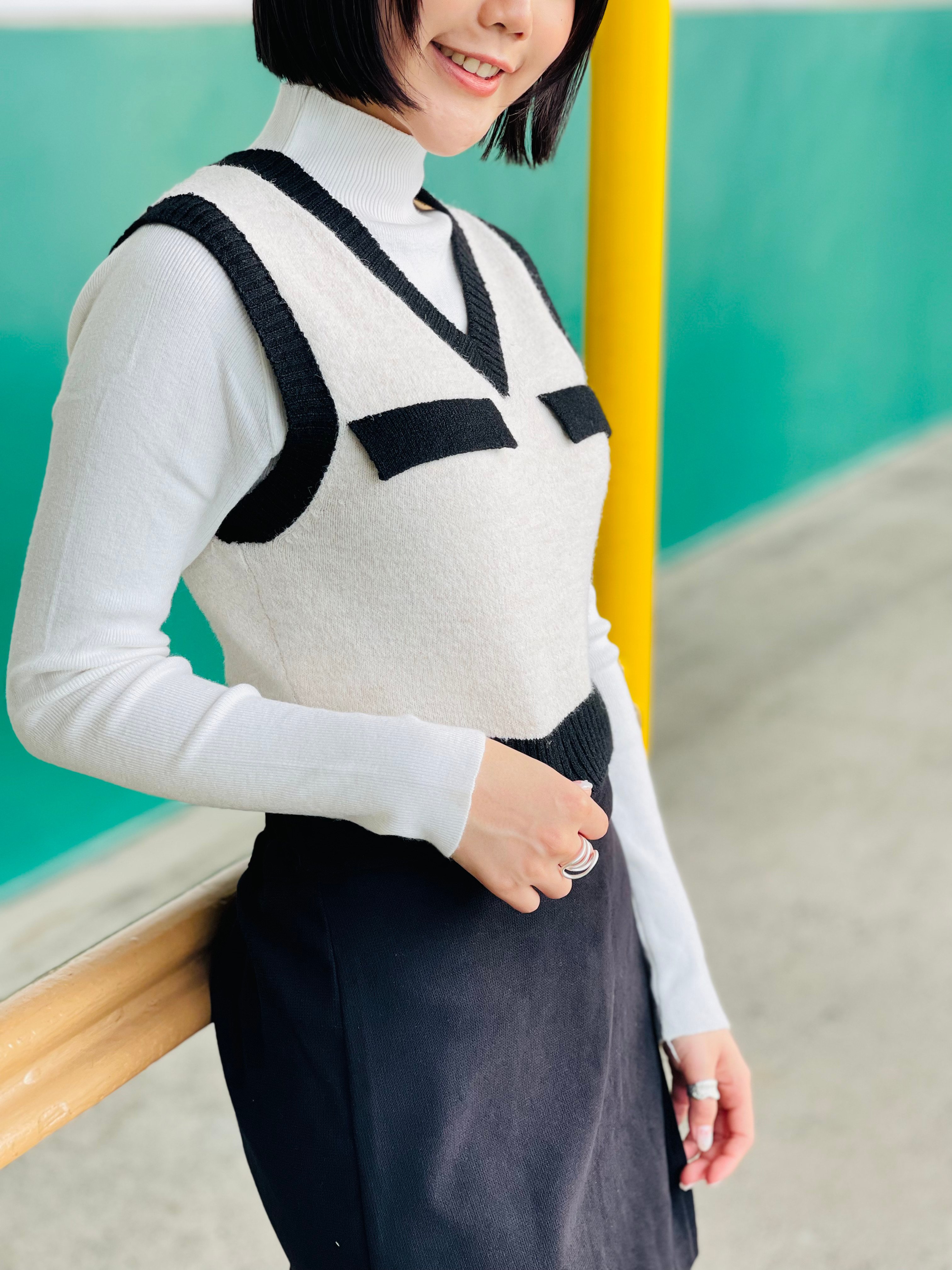 New release! Our Chloe'sMonochrome Vest is here — your closet's classic "film noir" piece.With its timeless black and white pairing, you'll stride from vintage vibes tomodern chic.
